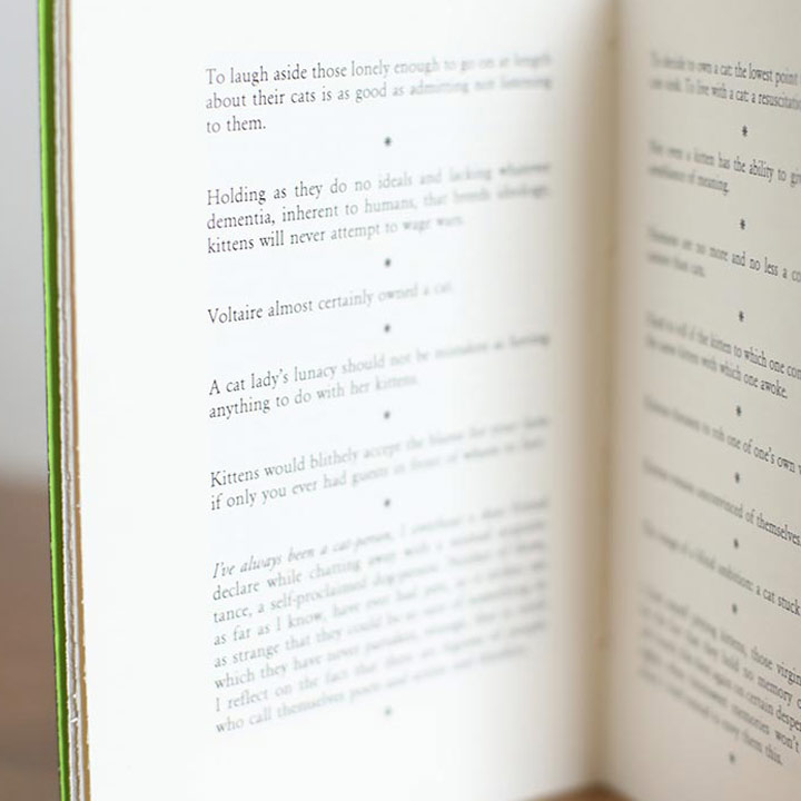 A handmade book of aphorisms about cohabiting with cats. All text is original with letterpress-printed cover and illustrations.